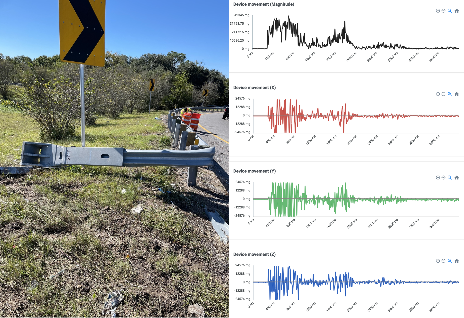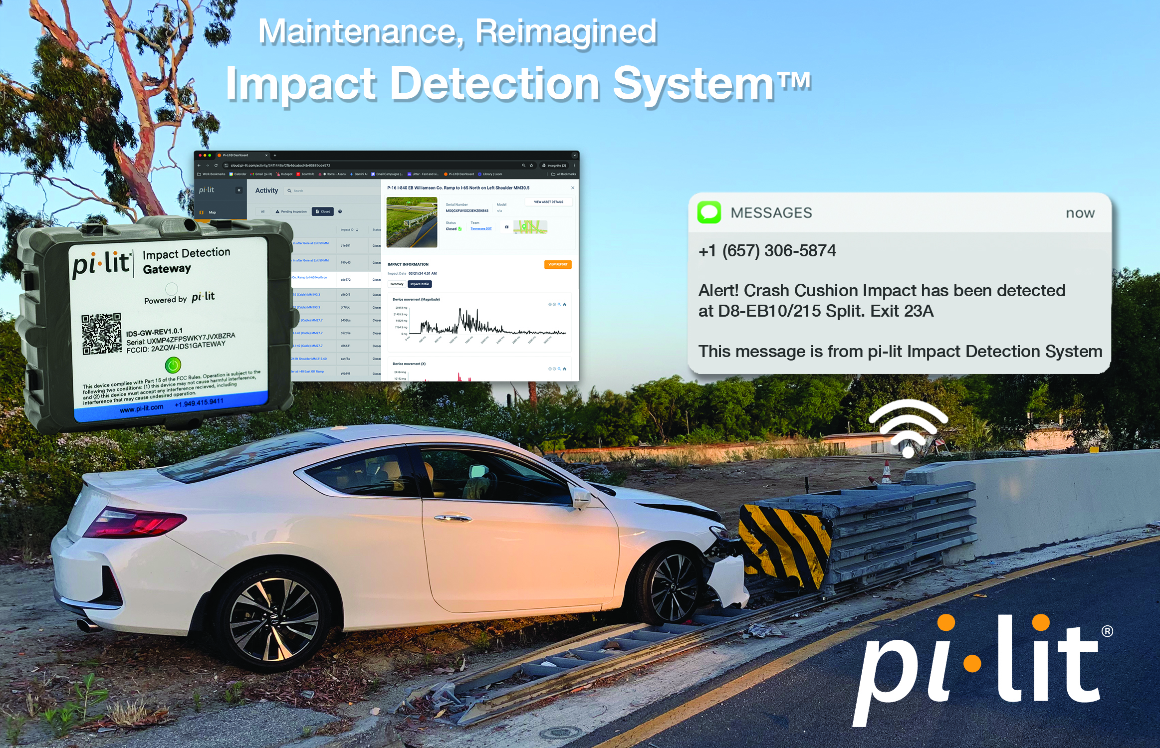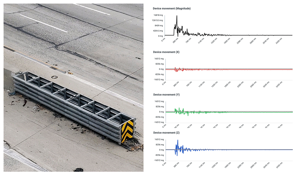 Real-time alerts via text message or email when a road safety device is impacted. Nuisance impacts that otherwise would go unnoticed are now reported in real-time to ensure immediate inspection and repair.