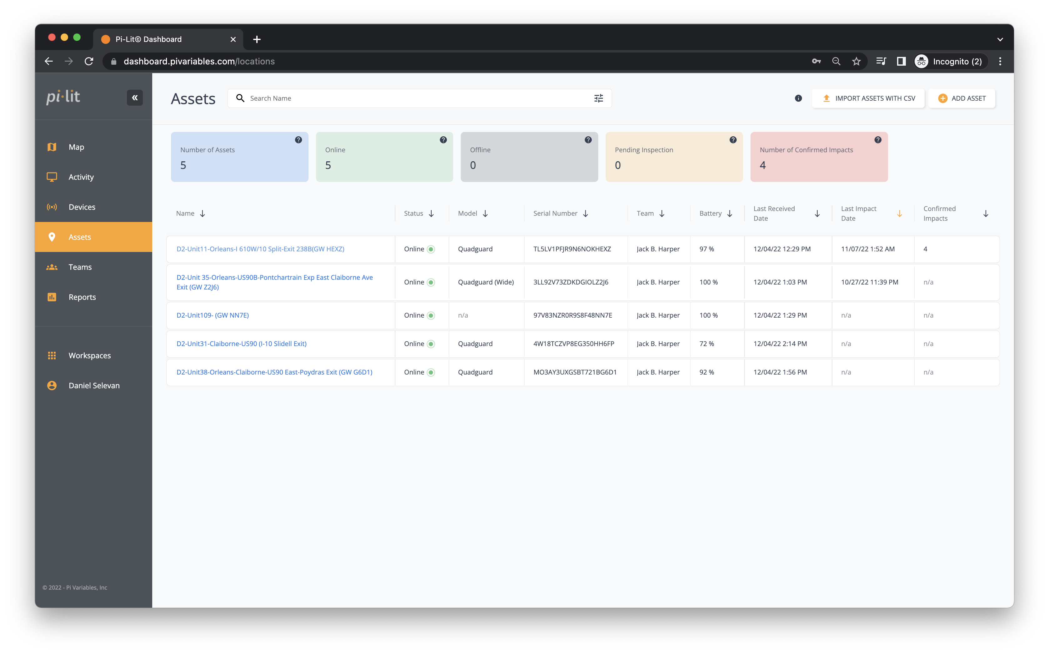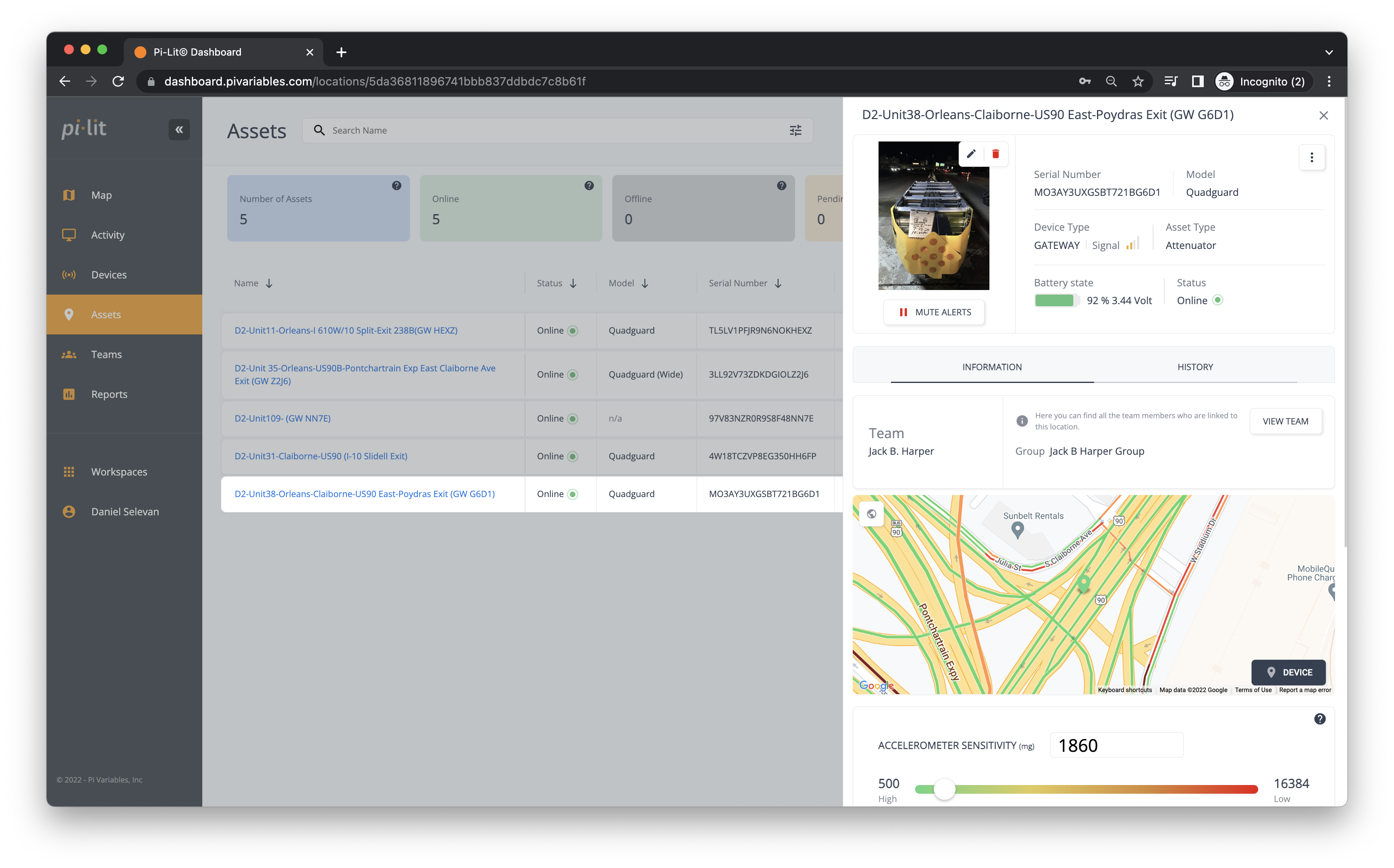 Manage inspection, maintenance, and repairs from the dashboard. Capture critical asset tracking and manufacturer information for quick recall identification, spare parts required following impact, etc. Automatically pushes the attenuator’s location and information to the dashboard where maintenance and management can view and monitor key assets.