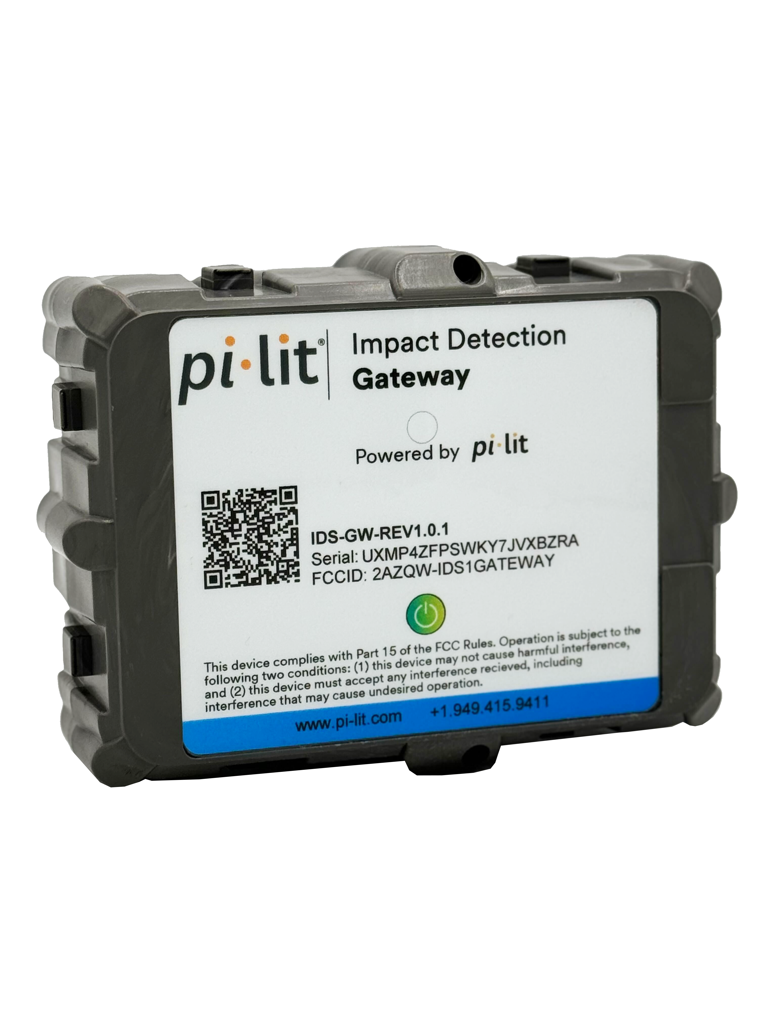 Pi-Lit uses one of two smart devices to monitor your crash cushions and barriers: The IDS Gateway and IDS Node. These are identical with one exception. The Gateway includes a cellular modem. When within range, many nodes can talk to a single Gateway leading to much lower cost deployment.